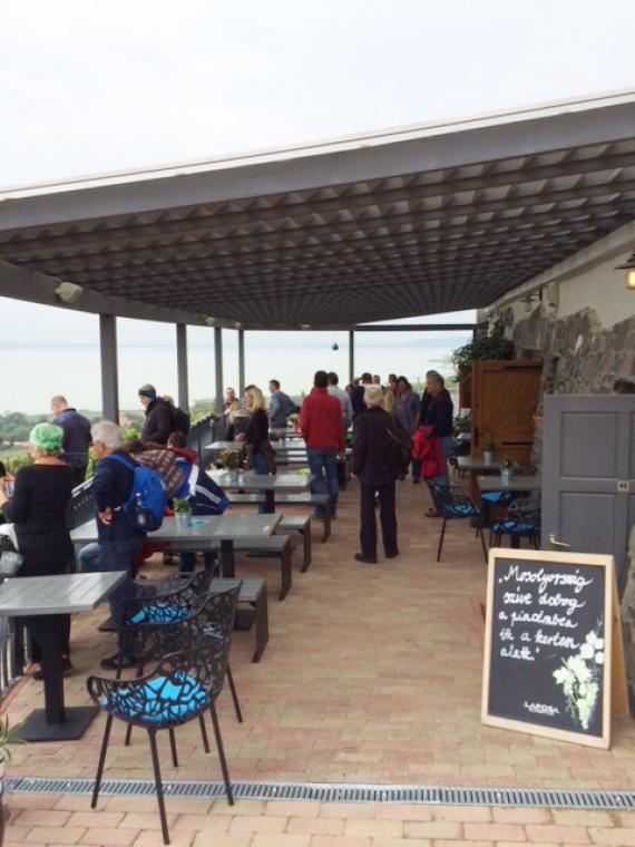 Szombat délelőtt gyalogos bortúrára indultunk, mely alatt három borkóstoló helyszínt érintettünk. Túránk hossza 9 km hosszú volt, mely a badacsonyi hegyvidék gyönyörű szőlőbirtokai között haladt, érintve a Kisfaludy Kilátót.